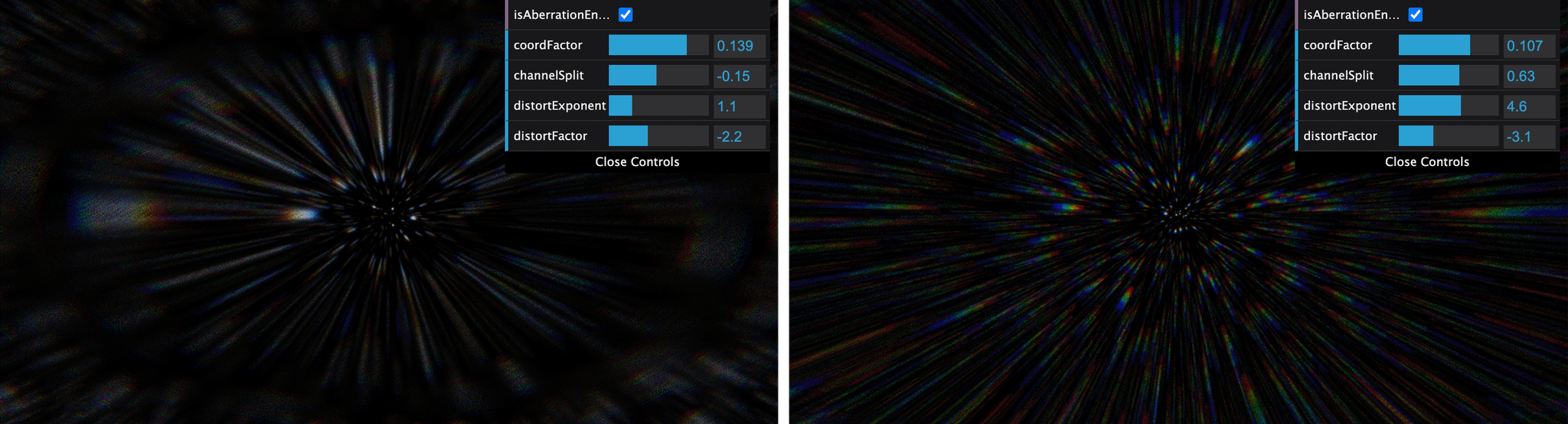 What kind of stuff? Chromatic aberration and radial blur. This was meant to be a celebration of humanity's achievements in optical science and engineering, and here I was proposing we simulate bad lenses from 50 years ago, but we gave it a shot.