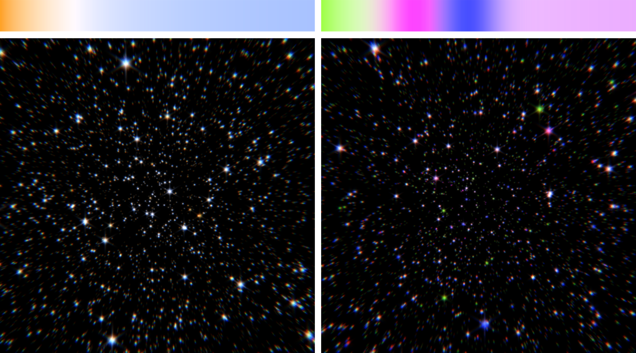 Setting aside the logistical, technical achievement of chucking a telescope into orbit and relaying its sights back to Earth, I was reminded of the old-school computer graphics exercise of journeying through a starfield. So, we decided to make our own.